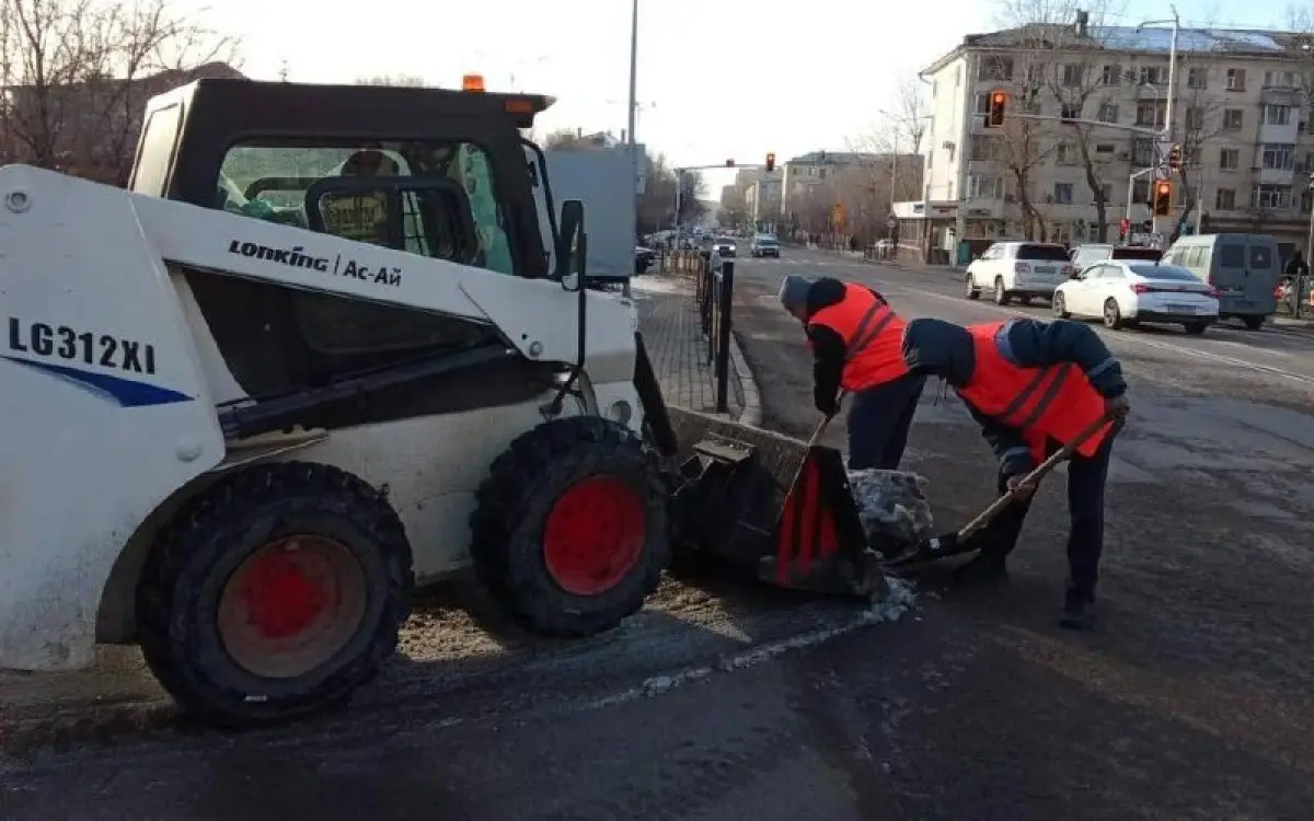 Коммуналдық қызметтер жолдар мен тротуарларды көктайғақтан тазартуға ерекше көңіл бөлініп жатыр, тұрғындардың қауіпсіз жүруі үшін техникалық тұз себіліп жатыр.