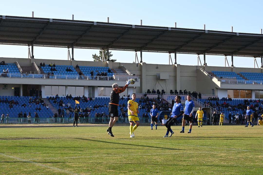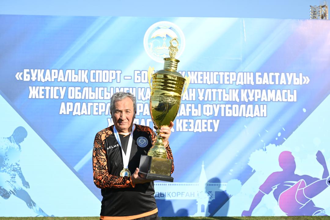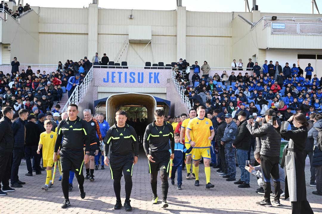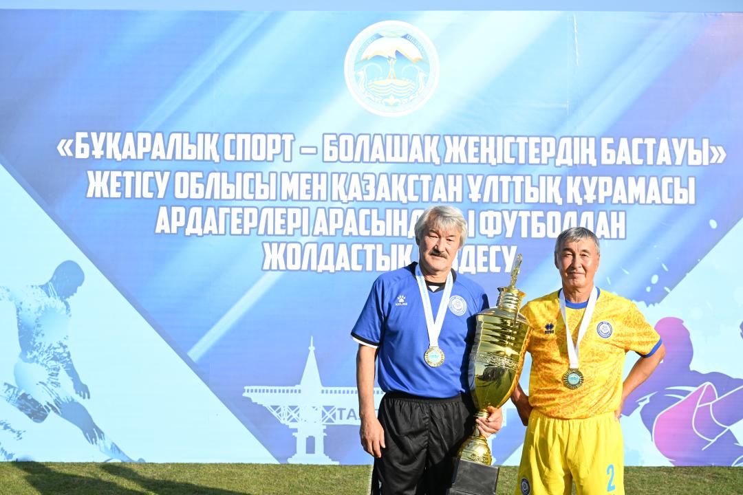 Мұнан соң ардагерлер спортшылар Қазақстан Ұлттық құрамасы мен Жетісу құрама әуесқой командалары сапында футбол алаңына шықты. Атап айтқанда, республикалық команданың құрамында жоғарыда аты аталған футболшылармен қатар Ваит Талгаев, Сергей Волгин, Берік Арғымбаев, Асқар Қожабергенов және басқа да ардагерлер, ал облыс командасында облыс әкімінің орынбасары Диас Есдәулетов, облыстық дене шынықтыру және спорт басқармасының басшысы Ұлан Рысқұл, «Жетісу» ФК бас жаттықтырушысы Самат Смақов, «Жетісу» ФК директоры Марк Гурман және басқа да азаматтар болды. Жолдастық кездесу 2:2 есебімен тең аяқталды.