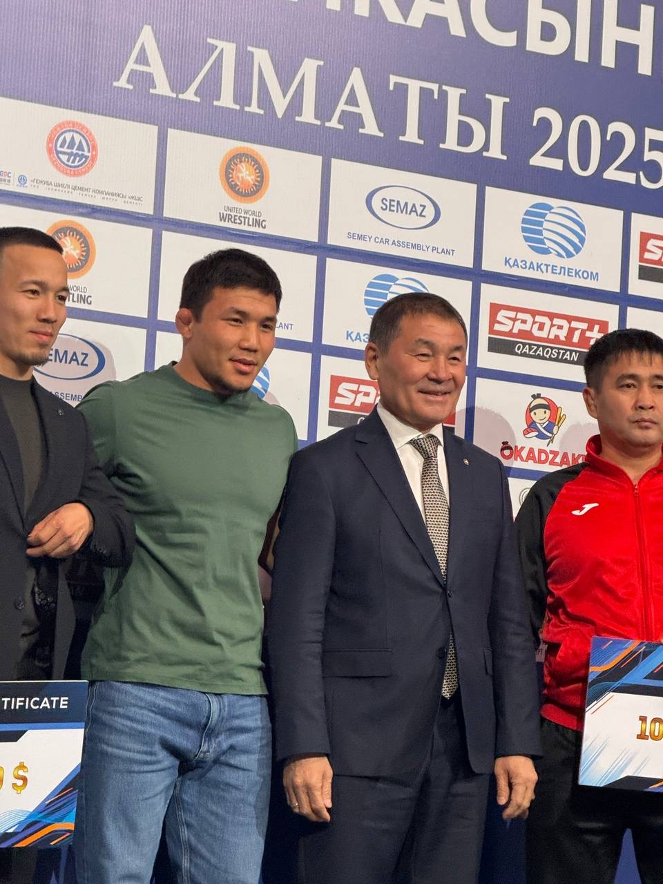 А чемпиону мира по греко-римской борьбе 20245 года Айдосу Султангали от Федерации была вручена денежная премия в размере 25 тысяч долларов США. Его личный тренер был удостоен награды в 10 тысяч долларов.